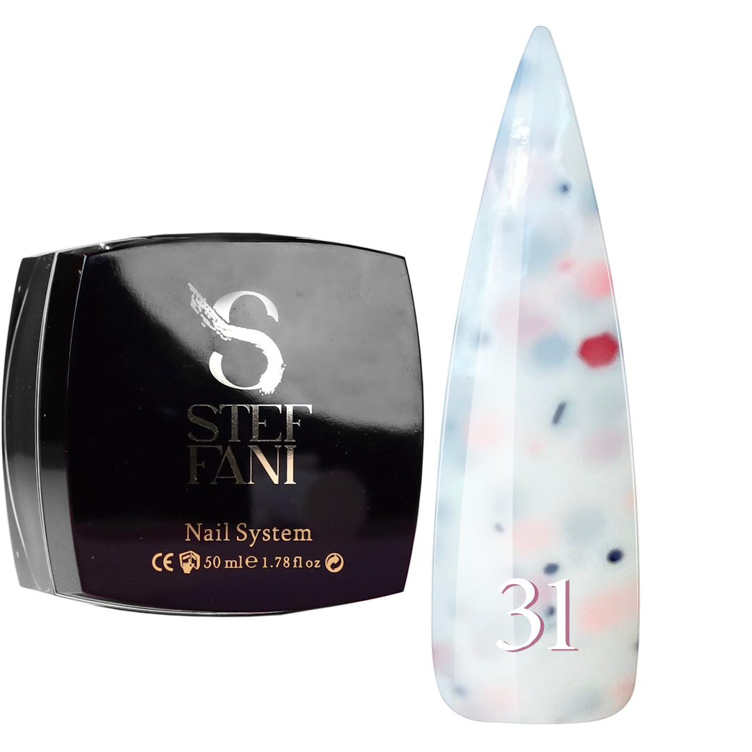 База камуфлирующая для гель-лака Steffani Cover Base №31 молочно-белый с черными, серыми, персиковыми конфетти, 50 мл