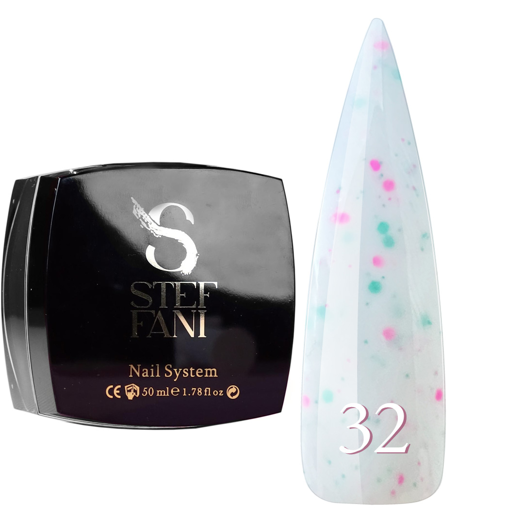 База камуфлирующая для гель-лака Steffani Cover Base №32 молочный с зелеными, розовыми конфетти и стружкой, 50 мл