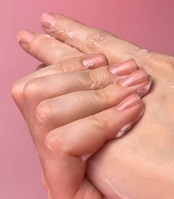 Тщательно вымыйте руки водой. Возьмите необходимое количество крема и распените в стеклянной емкости. Равномерно распределите пенку на обеих ладонях, включая пальцы и запястья. Нежными массирующими движениями разотрите пенку на коже рук и смойте водой.