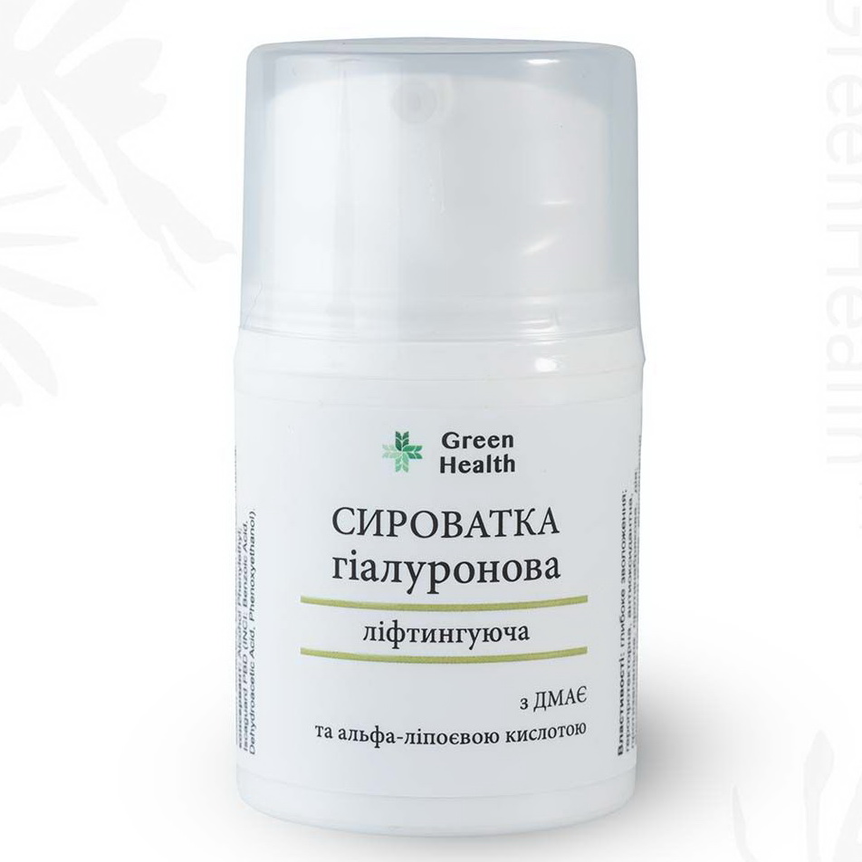Сыворотка для лица гиалуроновая лифтингирующая с ДМАЭ и альфа-липоевой кислотой Green Health СС-014, 30 мл
