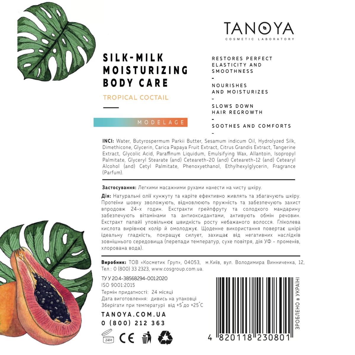 Увлажняющее молочко для тела с шелком (аромат тропический коктейль) TANOYA, 200 мл