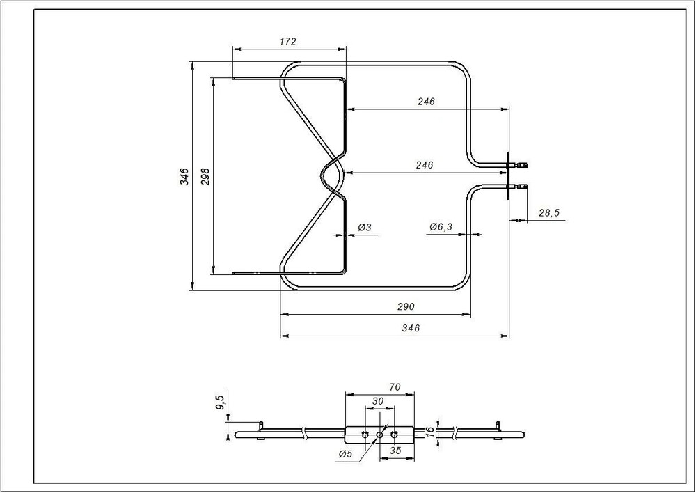 - Тэн нижний для духовки Indesit C00857528 1150W 230V B=345mm L=345mm