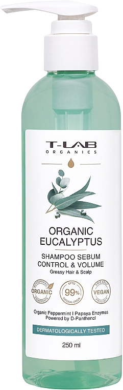 Органический эвкалиптовый шампунь для контроля кожного сала и объема подходит для жирных волос и кожи головы.
