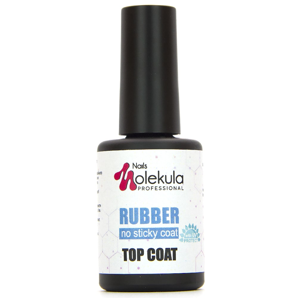 Nails Molekula Rubber No Sticky Top Coat - гель-лаковый финиш на каучуковой основе. Позволяет избежать царапин, трещин и сколов. Дарит декоративному покрытию ослепительный блеск и придает большую выразительность его оттенку. Оптимален для любых дизайнов. Обладает отличной эластичностью. Комфортный и простой в нанесении. Без остаточной липкости.