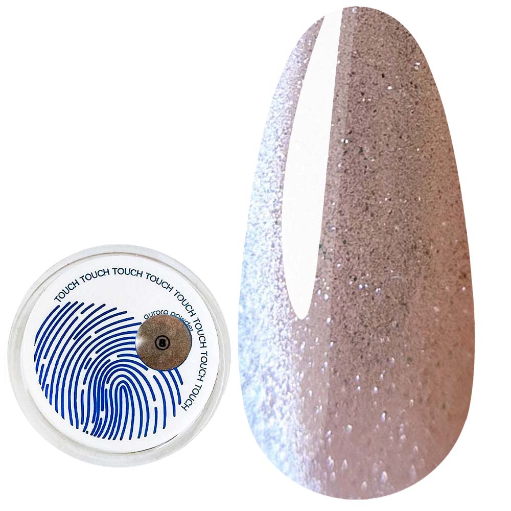 TOUCH AURORA POWDER - коллекция из 11 жемчужных втирок ультрамелкого помола, которые очень легко и плотно втираются. Благодаря тому, что втирка состоит из сверхмелких частиц премиум качества, она наносится без пробелов и неровностей, что делает маникюр значительно легче. Aurora Powder дополнит любое покрытие своим мерцающим сиянием. Нежнейшие переливы на светлых оттенках, напоминающие жемчужинки, или яркие блики на темных цветах. Также придает мокрый эффект покрытию. Одно втирание на разных цветах засияет вам разными красками.