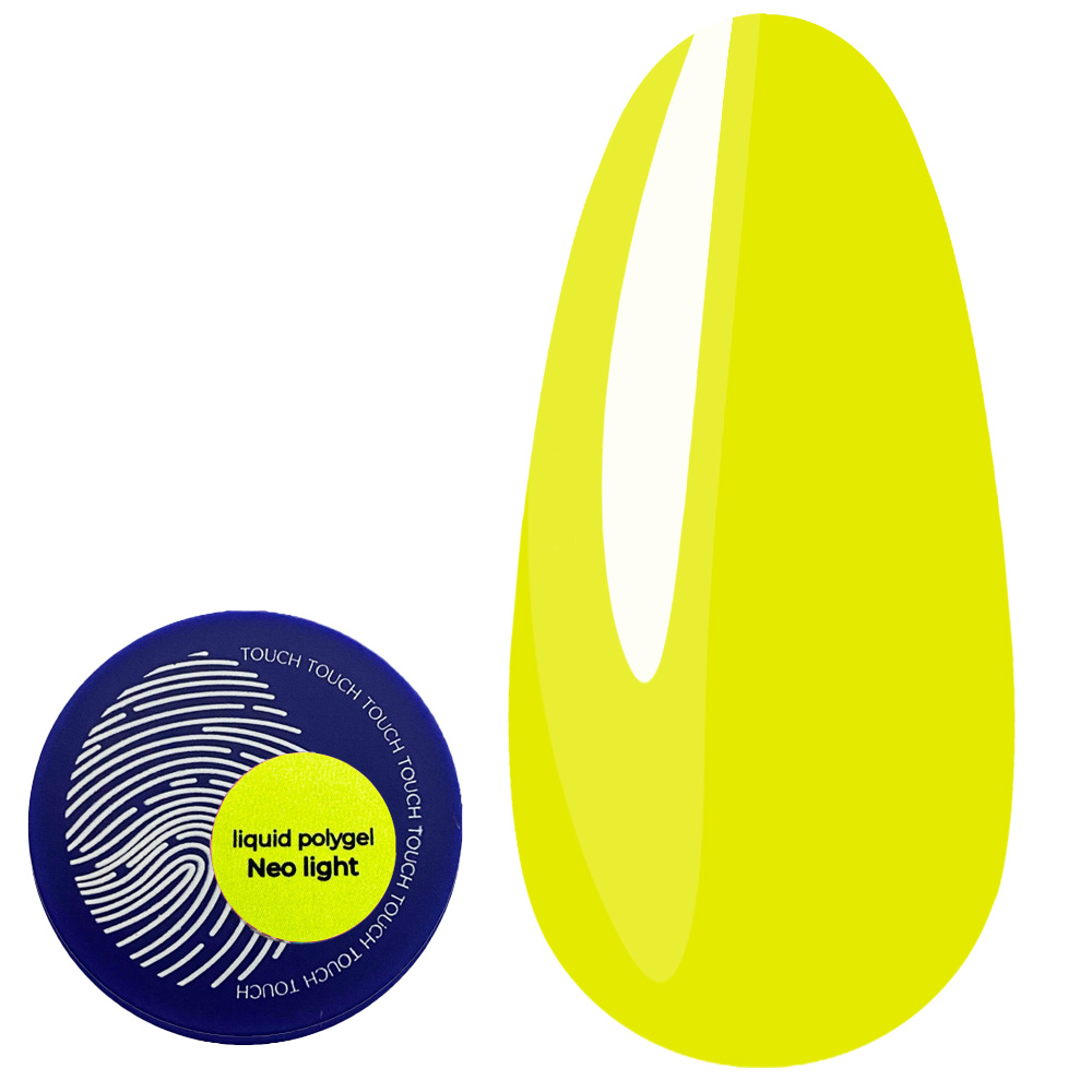 TOUCH NEON LIQUID POLYGEL – это жидкий полигель, являющийся твердым материалом, обладающий консистенцией базы. Жидкий полигель легкий и комфортный в работе, ведь самовыравнивается в считанные секунды, что экономит время работы мастера. Материал является жестким, однако мягче полигеля в тюбике от бренда TOUCH. Баночка 15 мл без кисточки, для того чтобы можно было достать материал до станной капли. Идеально подходит для ногтей к средней длине. Хорошо амортизируется, при этом остается крепким.