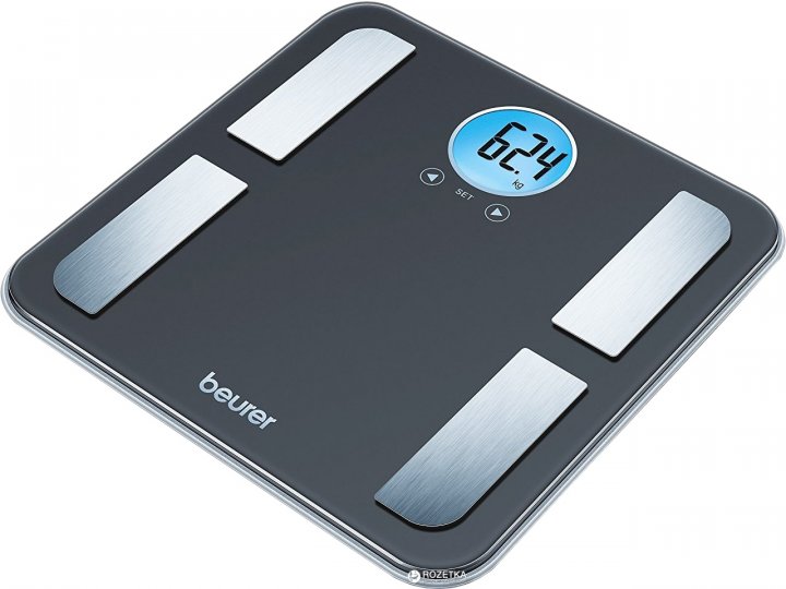 Кроме точного измерения веса, прибор имеет диагностические функции — анализ тела дает пользователю возможность отследить, насколько гармонично пропорционально соотношение жира, костной ткани, жидкости и мышечной массы. Особенности: Синее свечение позволяет осуществлять взвешивание в темное время суток или помещениях с умеренным освещением Весы сделаны в современном стиле. Они выглядят как в домашнем интерьере, так и в спортивном фитнес-клубе. Большой экран круглой формы позволяет легко рассмотреть показания с высоты человеческого роста.