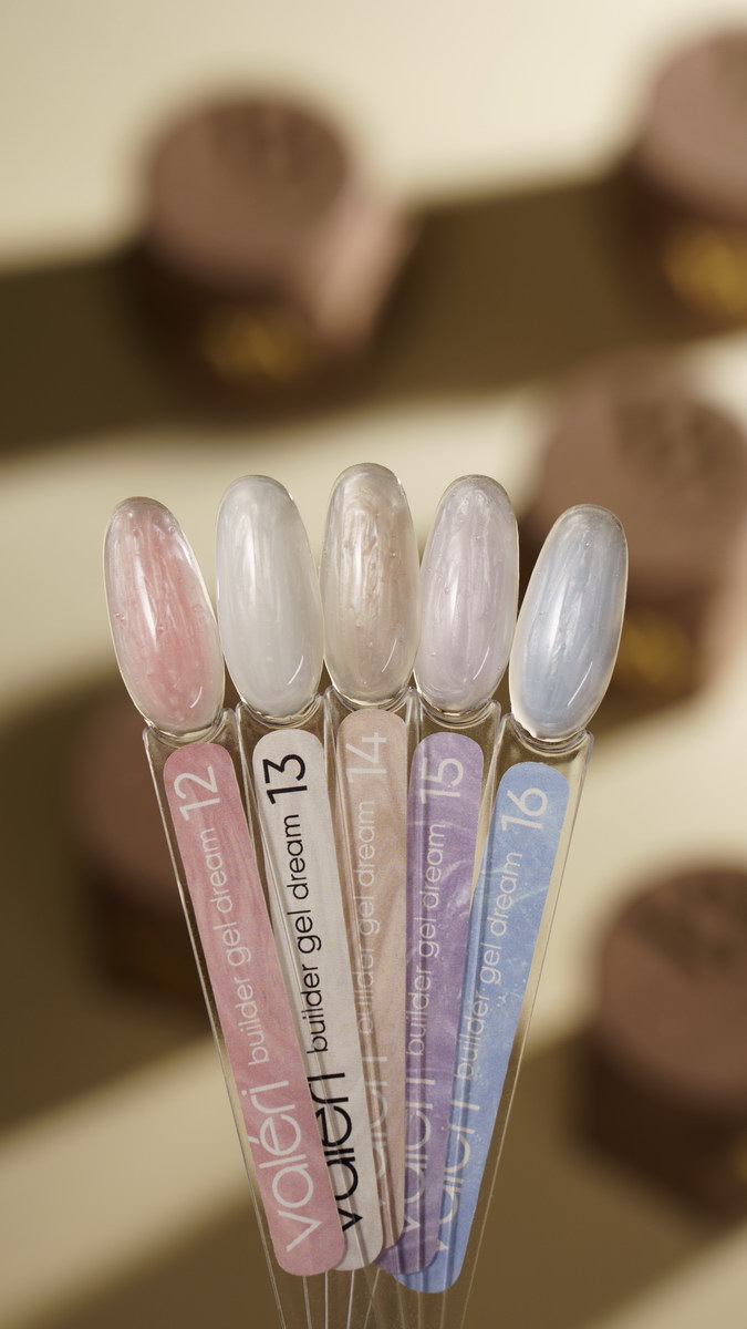 Valeri Builder Gel Dream Collection – это коллекция гелей, используемых как для наращивания ногтей, так и для коррекции и укрепления ногтевой пластины. Это среднетемпературный гель с высокой степенью адгезии, твердый, средней густоты (ближе к густой) за счет чего очень хорошо самовыравнивается, но не затекает. Пигментация – средняя. Легкие в нанесении и хорошо держат арку ногтя.