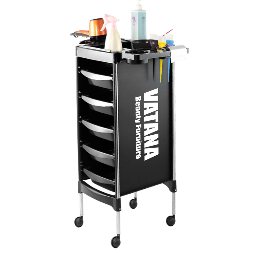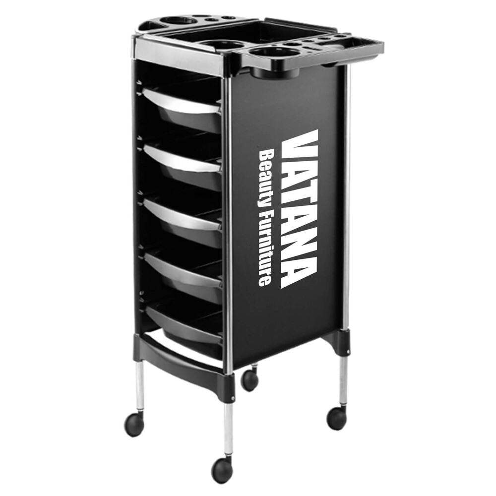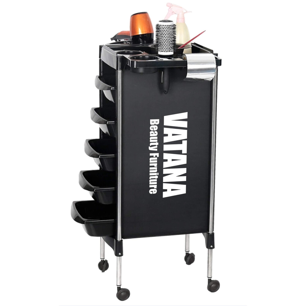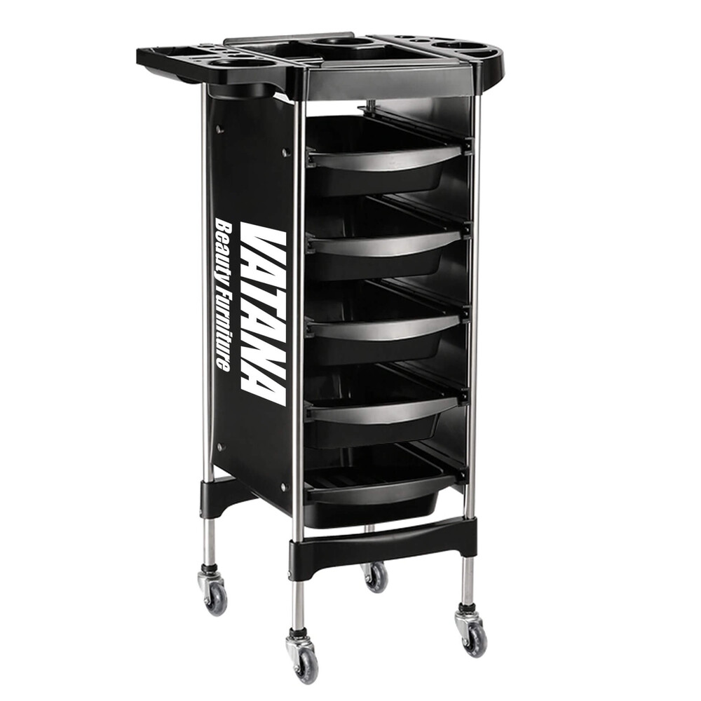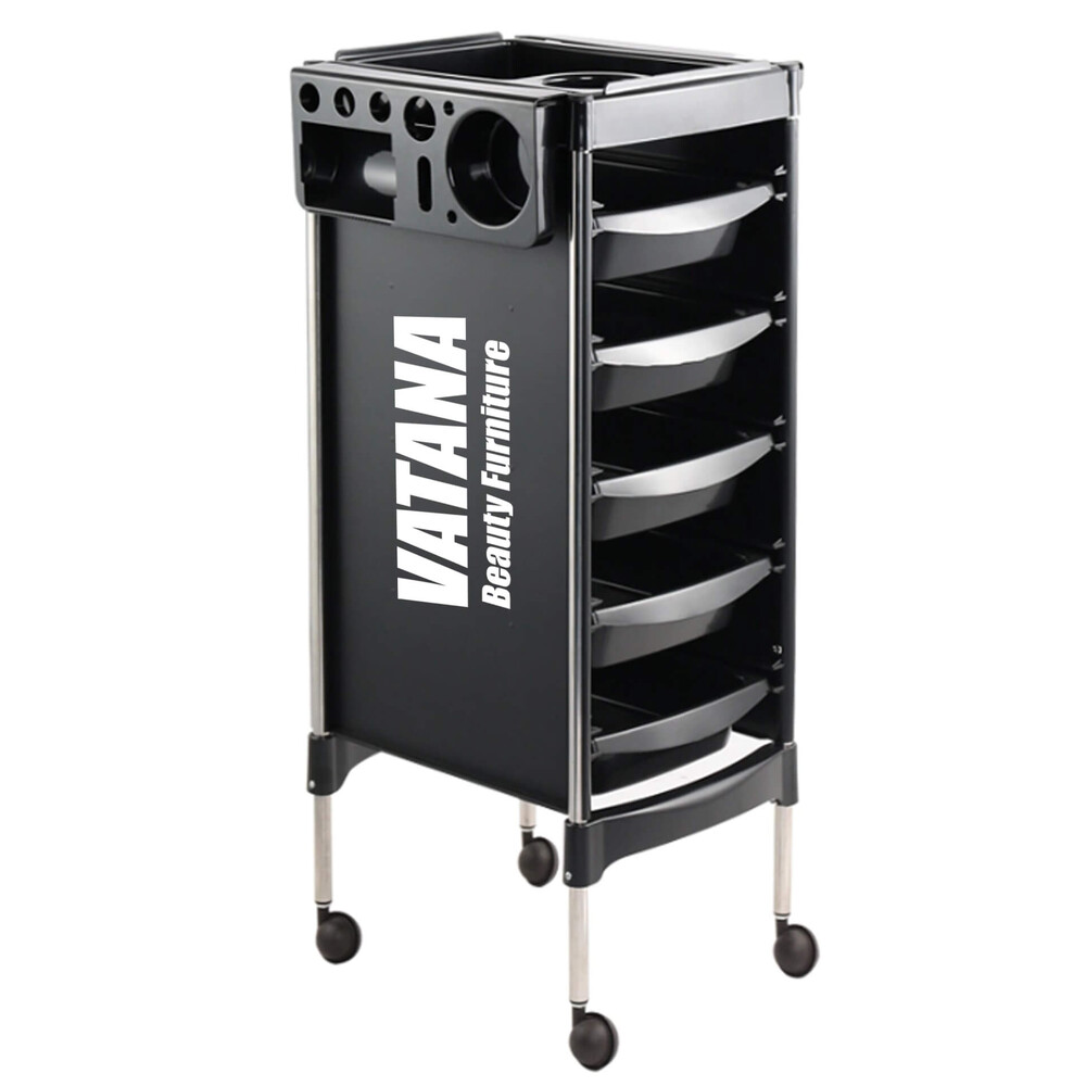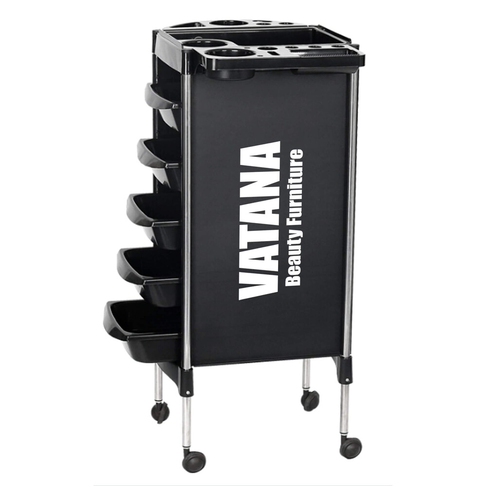 - Тележка парикмахерская для салонов красоты Vatana 578-003 имеет 5 отделов для хранения инструментов.
