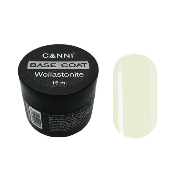 Восстанавливающая база Wollastonite Base strong CANNI - твердое базовое покрытие, содержащее в составе природный минерал волластонит, который заполняет поврежденные участки ногтевой пластины и обеспечивает дополнительную прочность.