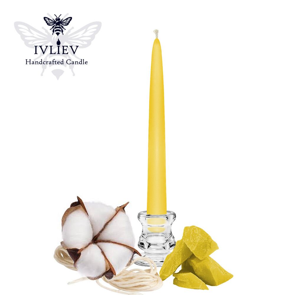 Свеча маканая №3 из пчелиного воска желтая 18 см диаметр 2 см, 1 шт