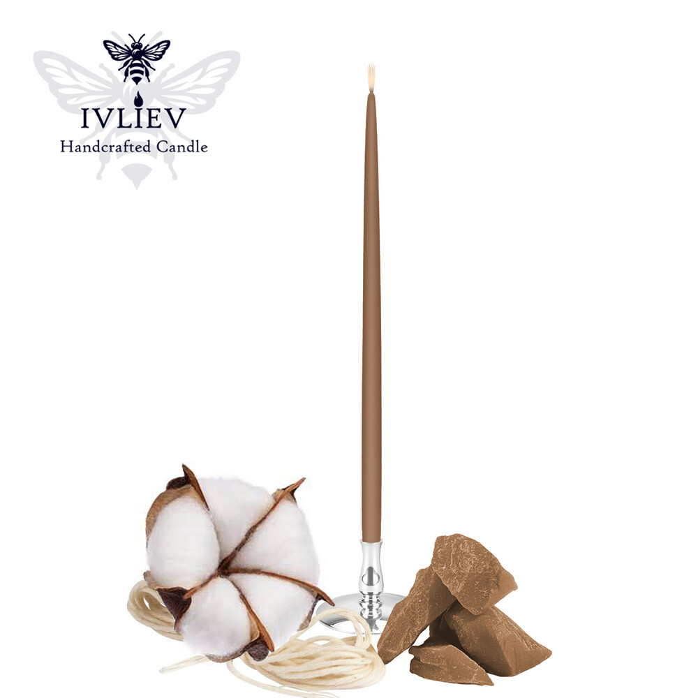 Свеча маканая из пчелиного воска коричневая 18 см, 1 шт