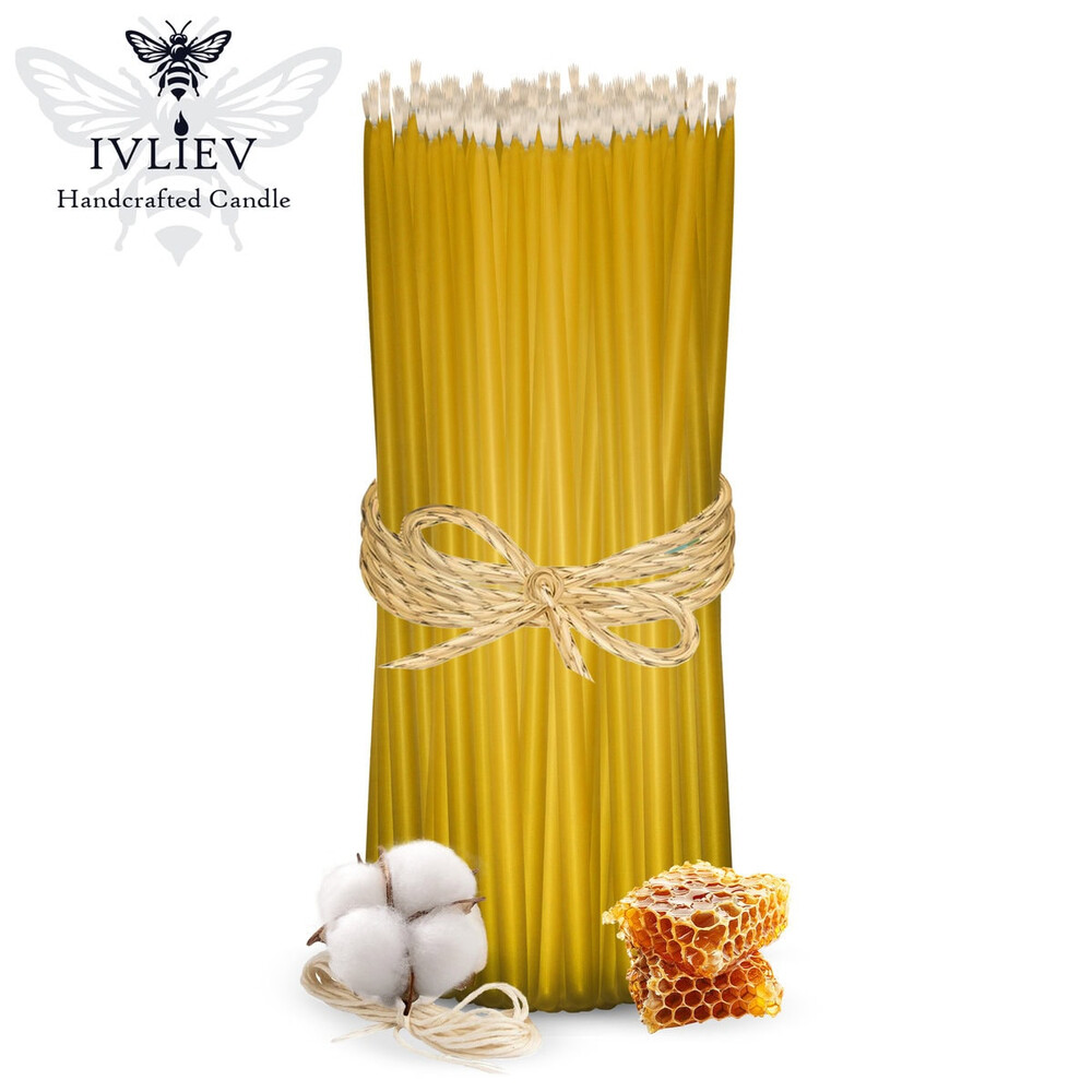 Свеча маканая из пчелиного воска желтая 18 см, 100 шт