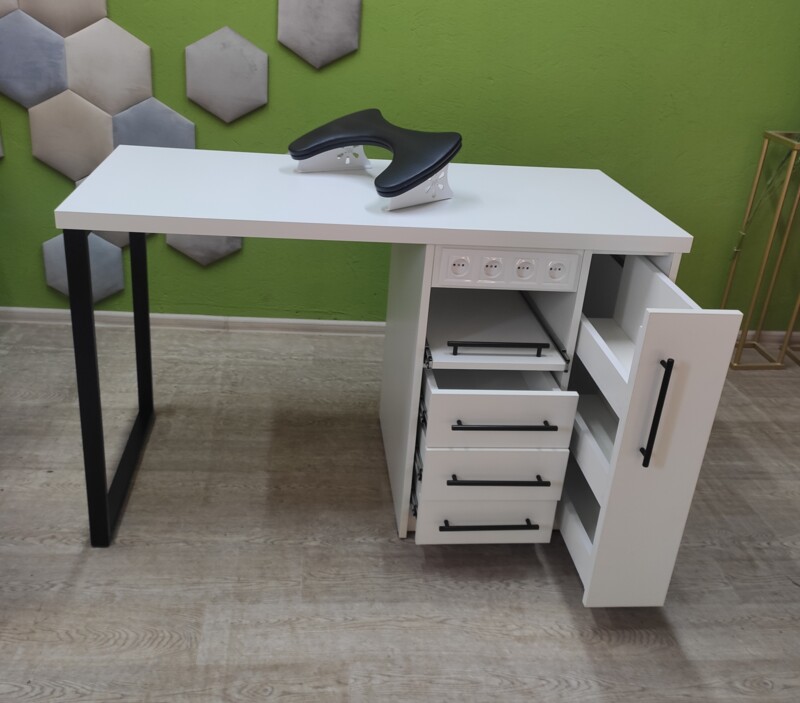 Профессиональный маникюрный стол с ящиками и выдвижной полкой для лаков