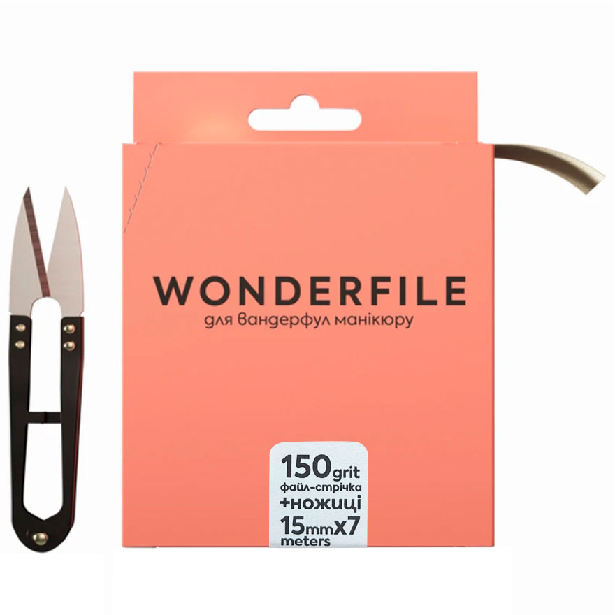 Файл-лента для пилки Wonderfile in white (130х15 мм 150 грит 7 метров) + ножницы
