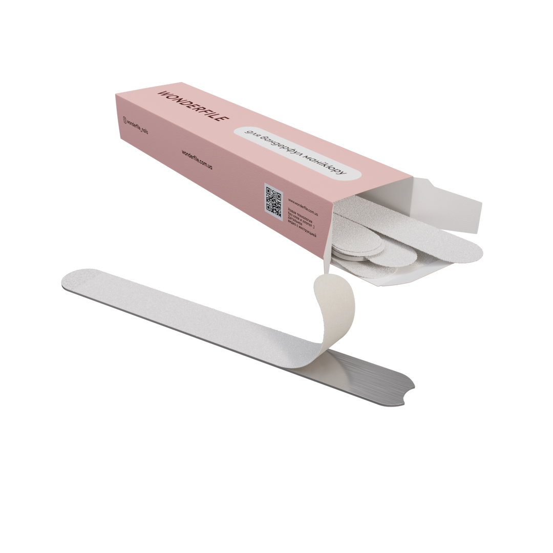 Файлы на клеевой основе. Мягкие, приятные, не осыпаются и не ранят кожу. Безопасный отступ файла от края основы, что защищает от порезов. Клей легко отклеивается даже после стерилизации в сухожаре и не оставляет следов. Использование одноразовых файлов позволяет сделать салонный маникюр и педикюр абсолютно безопасными. Экологический продукт.