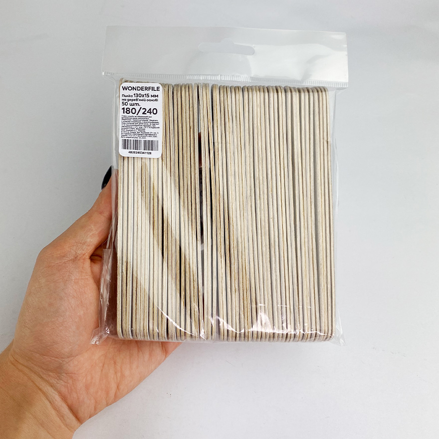 Пилка на деревянной основе с принтом Wonderfile (130x15 мм 180/240 грит 50 шт)