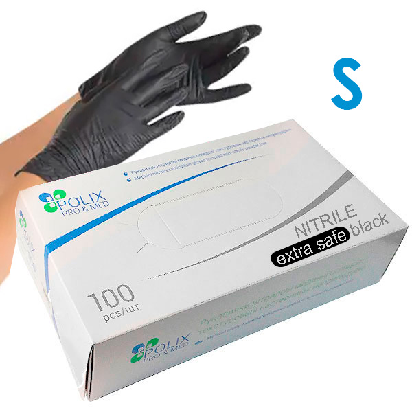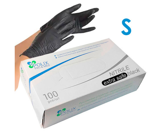 Рукавички медичні нітрилові неопудрені Polix Pro&Med Black S (100 шт/пачка) чорні