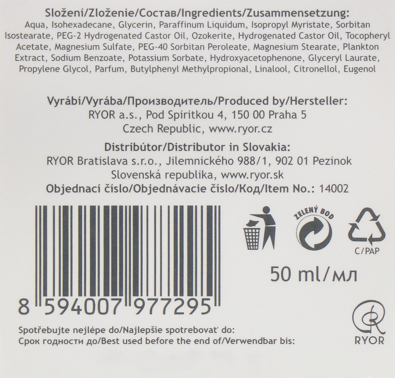 Нічний крем для обличчя RYOR з морськими водоростями, 50 мл