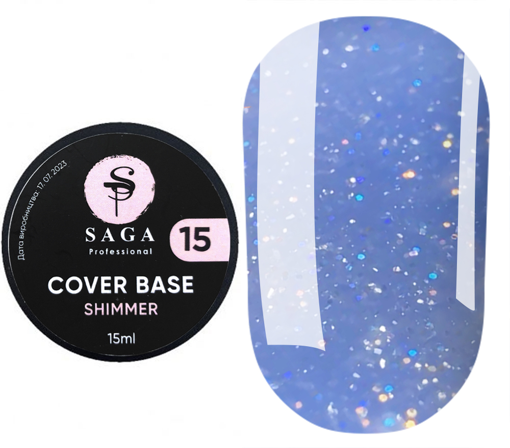 База для гель-лаку Saga Shimmer Base New №15 блакитний з шиммером, 15 мл