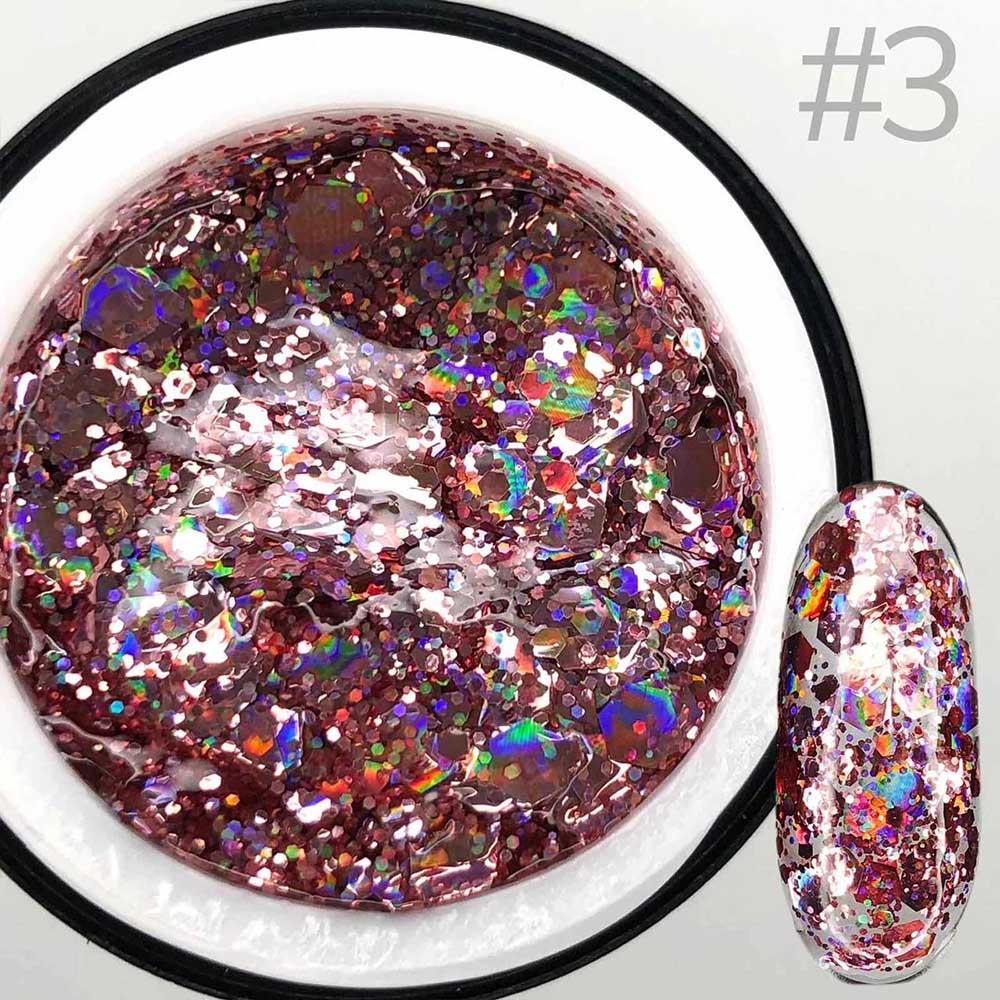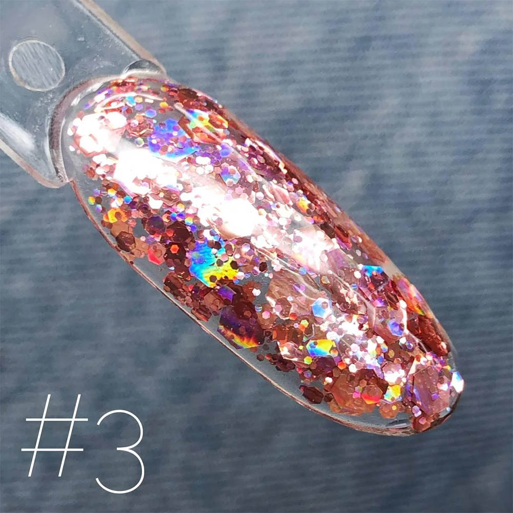 | Колір | прозорий з голографічними рожево-персиковими глітерними частинками |