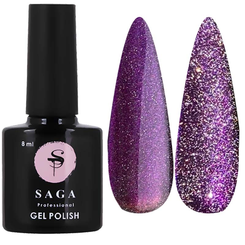 Гель-лак Saga Cat Chameleon допоможе створити красивий, багатогранний та стійкий манікюр. Лаки від Saga високоякісні, дуже пігментовані, щільно лягають. Saga Cat Chameleon - світловідбивні гель-лаки з ефектом котячого ока та переливами хамелеону, які мають відмінну зносостійкість, зручні у нанесенні, а також самовирівнюються по нігтьовій пластині. Гель-лак світловідбивний залежно від освітлення має магічний шиммерний блиск. До складу гель лаку входять дрібні опалові блискітки та світловідбиваючий пісок, саме вони надають чарівне сяйво нігтям. Для отримання ефекту котяче око необхідно використовувати спеціальний магніт. Цей гель-лак підкреслить яскравий настрій кожної дівчини та підійде для створення святкового манікюру.