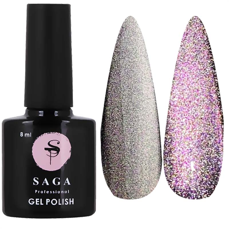 Гель-лак Saga Cat Chameleon допоможе створити красивий, багатогранний та стійкий манікюр. Лаки від Saga високоякісні, дуже пігментовані, щільно лягають. Saga Cat Chameleon - світловідбивні гель-лаки з ефектом котячого ока та переливами хамелеону, які мають відмінну зносостійкість, зручні у нанесенні, а також самовирівнюються по нігтьовій пластині. Гель-лак світловідбивний залежно від освітлення має магічний шиммерний блиск. До складу гель лаку входять дрібні опалові блискітки та світловідбиваючий пісок, саме вони надають чарівне сяйво нігтям. Для отримання ефекту котяче око необхідно використовувати спеціальний магніт. Цей гель-лак підкреслить яскравий настрій кожної дівчини та підійде для створення святкового манікюру.