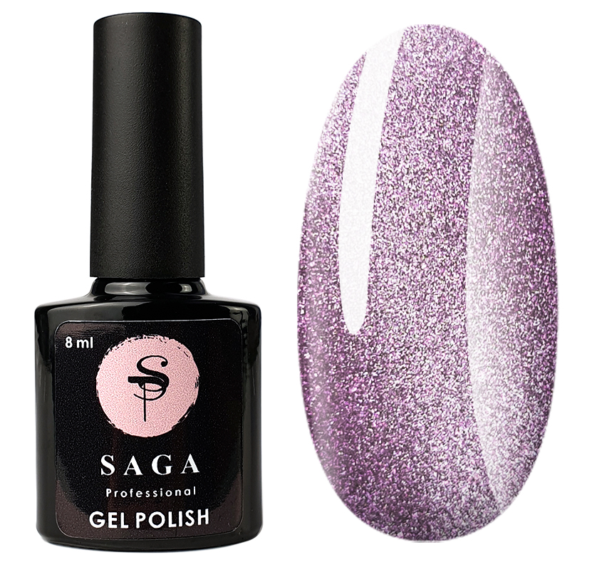 Будь-який гель-лак Saga відрізняється високою щільністю, насиченою пігментацією та гарною якістю. Гель-лак з ефектом «котяче око» на додаток до всього здатний створити витончений, багатогранний та стійкий манікюр. Його зручно наносити, оскільки він самовирівнюється і після висушування створює міцне зносостійке покриття. Це магнітний лак, тому перед використанням баночку з ним потрібно добре струсити, щоб металеві частинки рівномірно розподілилися у флаконі. Його рекомендується наносити на щільну чорну підкладку.