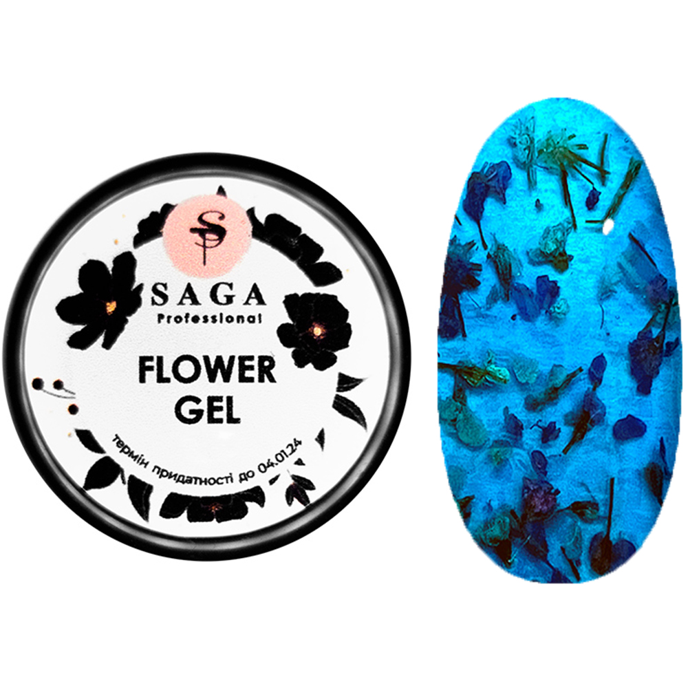 Flower Gel - від компанії Saga Professional, це гель, який містить натуральні сухоцвіти.