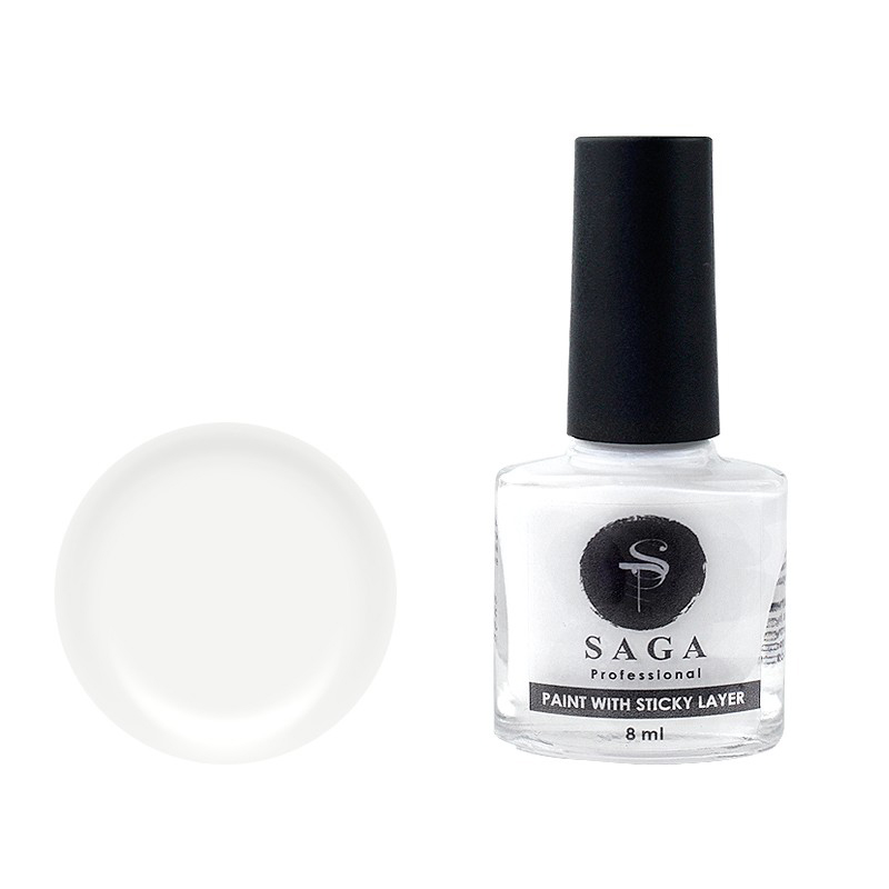Saga Professional Stamping Paint With Sticky Layer – лак-фарба для стемпінгу, яка має липкий шар. Може використовуватися як у традиційному стемпінг-дизайні, так і у трендовому поєднанні "стемпінг+лиття фольгою". Наявність липкого шару дозволяє переводити на малюнок фольгу та створювати тим самим дуже яскраві, красиві та стильні нейл-композиції. Лак-фарба має оптимальну насиченість пігментом, правильну консистенцію для взаємодії з пластинами та дисками (повноцінно заповнює насічку, але не тече). Завдяки відмінним характеристикам цей матеріал дуже добре показує себе в нейл-дизайні, подобається майстрам та новачкам.