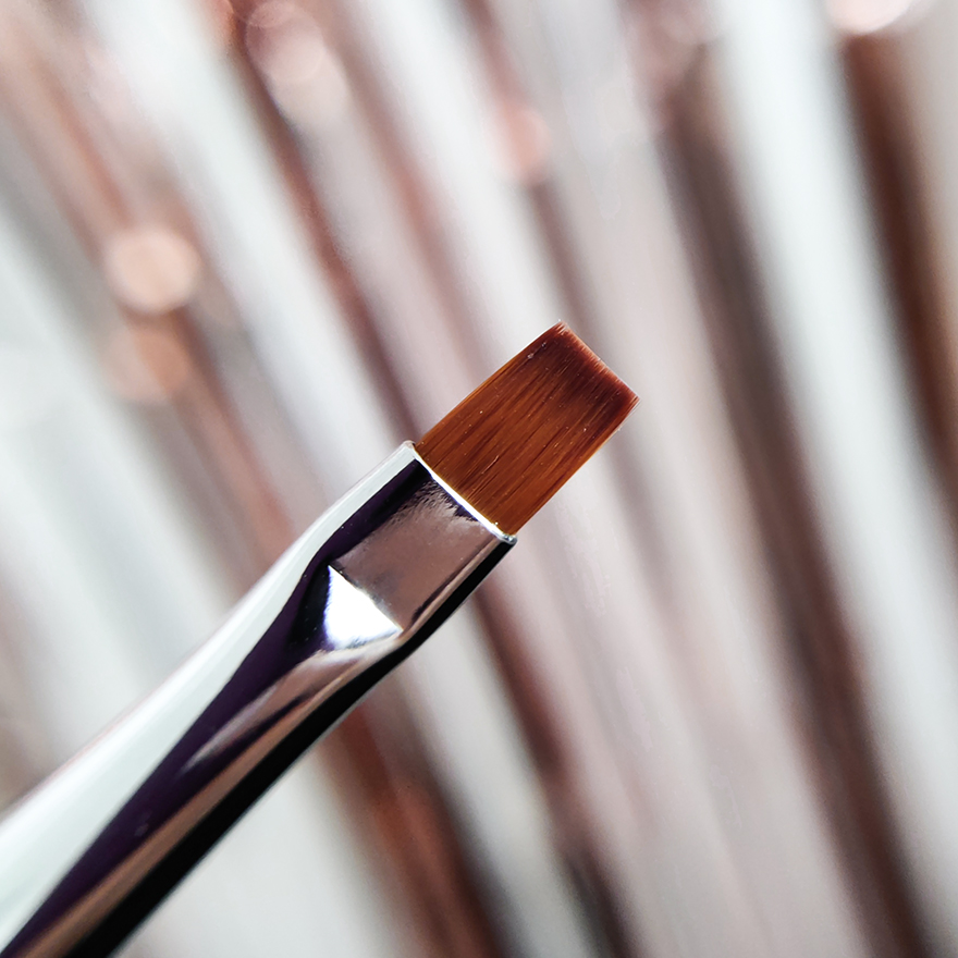 У пензля квадратна форма та тонкий край. Ним зручно рівномірно розподіляти гелевий матеріал по нігтьовій поверхні, запобігаючи розтіканню на навколонігтьові валики та під кутикулу.