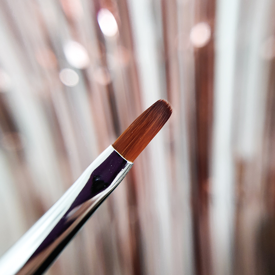 У пензля овальна форма та тонкий край. Ним зручно рівномірно розподіляти гелевий матеріал по нігтьовій поверхні, запобігаючи розтіканню на навколонігтьові валики та під кутикулу.