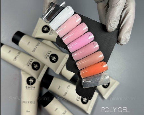 Полігель Saga Professional Poly Gel - гібрид, отриманий шляхом поєднання найкращих властивостей акрилу та гелю. Має дрібнозернисту структуру, добре викладається.