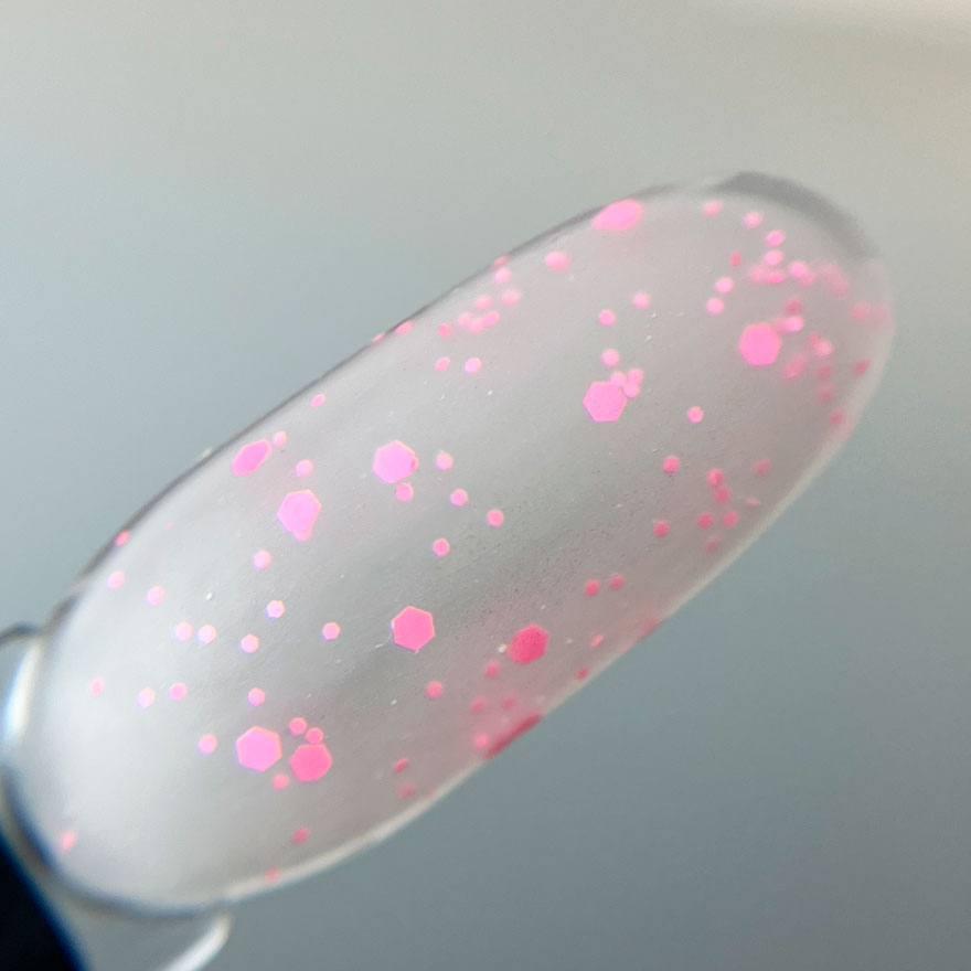 Топ матовий із неоновими каміфубіками. Ідеальний варіант доповнити манікюр яскравими нотками. Зручний у роботі, що самовирівнюється, полімеризація в лампі 60 сек.