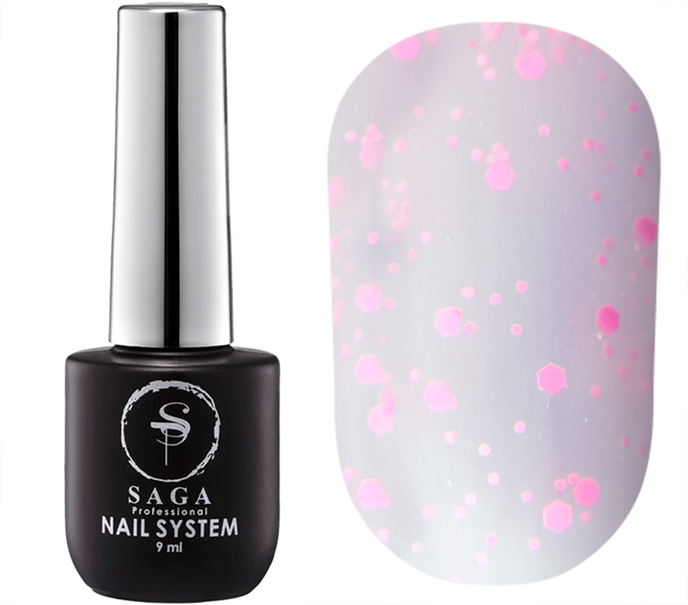 Матовий топ без липкого шару з каміфубуками Saga Mosaic №02 рожевий, 9 мл