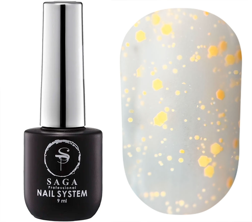 Матовий топ без липкого шару з каміфубуками Saga Mosaic №03 жовтий, 9 мл