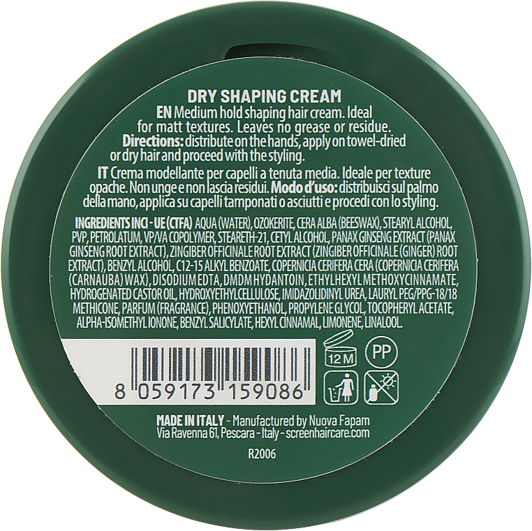 Моделуючий крем для волосся з матовим ефектом середньої фіксації Screen For Man Dry Shaping Cream, 75 мл