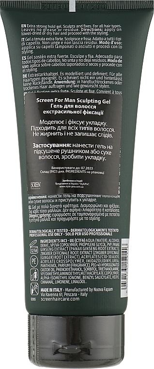 Гель екстрасильної фіксації для чоловічого волосся Screen For Man Sculpting Gel, 200 мл
