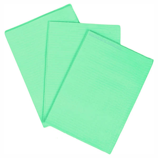 Серветка не промокає та не пропускає рідину. Складається з трьох різних шарів: перші два – абсорбуючий папір, третій – водонепроникний поліетилен. Серветки-нагрудники мають гарне поглинання та забезпечують чудовий бар'єр для вологи.