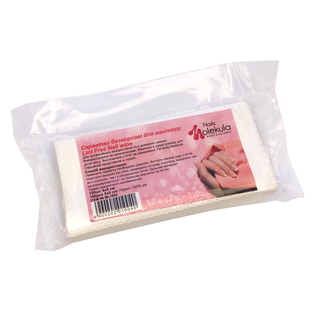 Серветки безворсові Molekula Lint Free Nail wipe (пачка 100 шт)