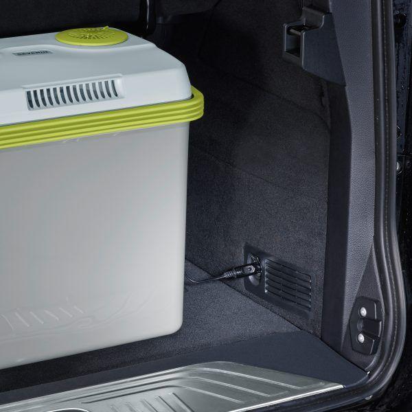 автомобіля за допомогою додаткового 12-вольтового кабелю. - Практична ручка для перенесення також може використовуватися для підтримки кришки. Знімна кришка має інтегрований отвір для кабелю та надійний двигун вентилятора зі щітковим приводом.