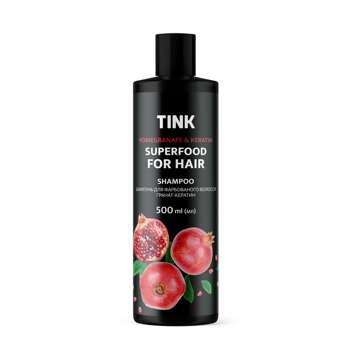 Регенеруючий шампунь серії Superfood for Hair Tink™ забезпечить найефективніший догляд фарбованому типу волосся. У склад шампуню входить екстракт гранату та кератин, які у комплексі сприяють швидкому відновленню структури пошкоджених локонів, створюють захисний шар, допомагаючи утримувати барвники, зберігаючи яскравість, насиченість кольору та стійкість блиску. Засіб полегшує розчісування та не обтяжує волосся.