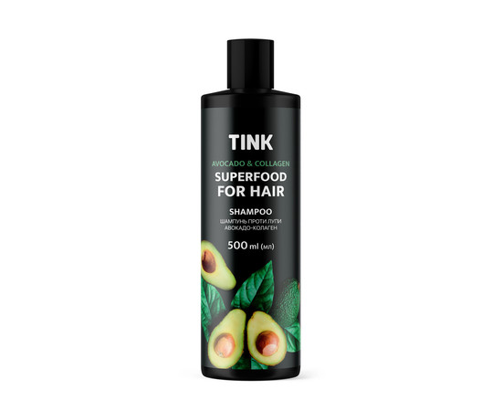 Шампунь серії Superfood for Hair Tink™ забезпечить найефективніший догляд всім типам волосся та позбавить його від лупи. Активна формула шампуню містить екстракт авокадо та колаген. У комплексі вони активно зволожують локони по всій довжині, нормалізують діяльність сальних залоз, інтенсивно очищають і живлять шкіру голови, усуваючи лупу та запобігаючи її появі, пом'якшують локони, роблять їх гладкішими та шовковистими.