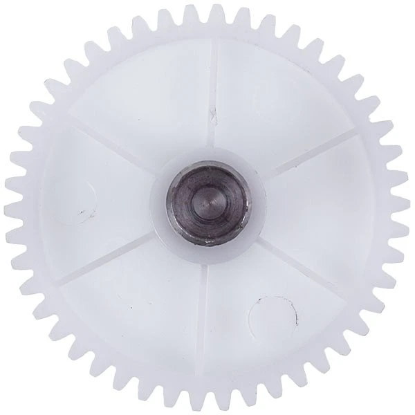 Шестерня з валом для мясорубки Moulinex MS-5775439. Діаметр: 82мм. Висота: 22мм. Кількість зубців: 46. Розміри вала (шестигранник): 16x72мм.