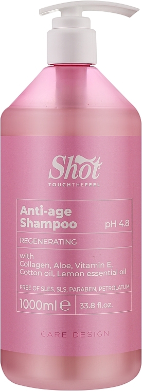 Купити Шампунь, що відновлює з колагеном Shot Care Design Anti-Age Shampoo, 1000 мл, ви зможете у нашому інтернет-магазині limonad з доставкою по всій Україні в тому числі і Київ, Дніпро, Одеса, Харків, Запоріжжя, Одеса, Львів та багато інших населених пунктів.