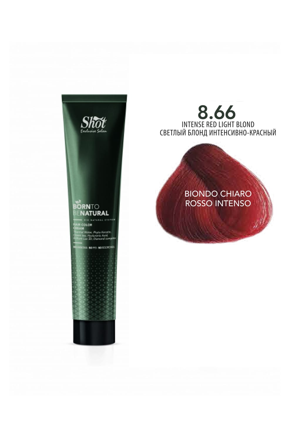 Крем-фарба для волосся Shot Born To Be NATURAL Hair Color Cream (8.66 Світлий блонд інтенсивно-червоний), 100 мл