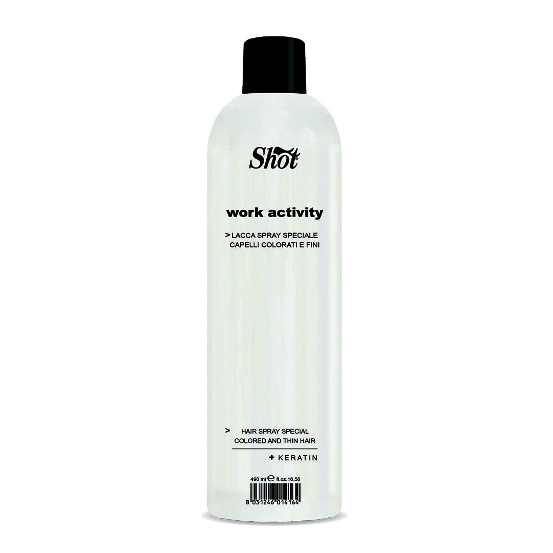Лак-спрей для фарбованого та тонкого волосся Shot LACCA SPRAY CAPELLI COLORATI E FINI + KERATIN WORK ACTIVITY, 490 мл