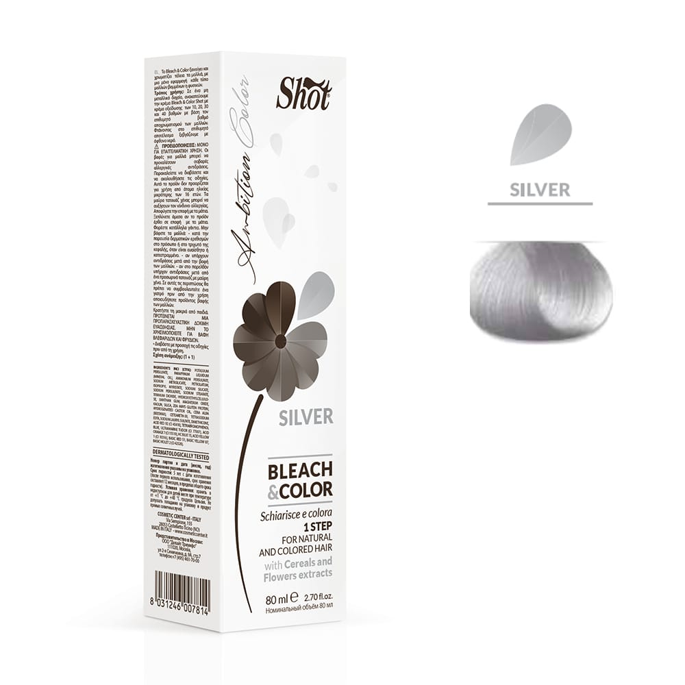 Крем, що знебарвлює, з пігментом Shot Ambition Color Bleach & Color (срібло), 80 мл
