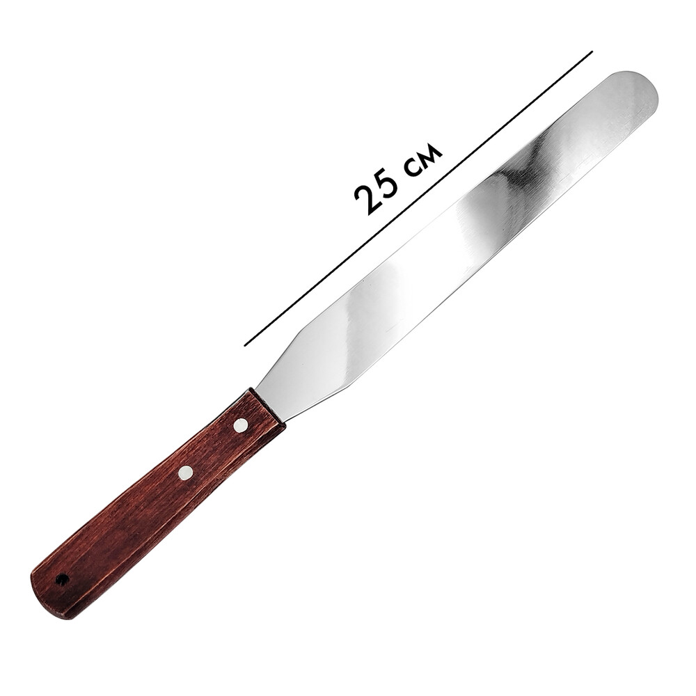 Шпатель для шугарингу металевий з дерев'яною ручкою 25 см