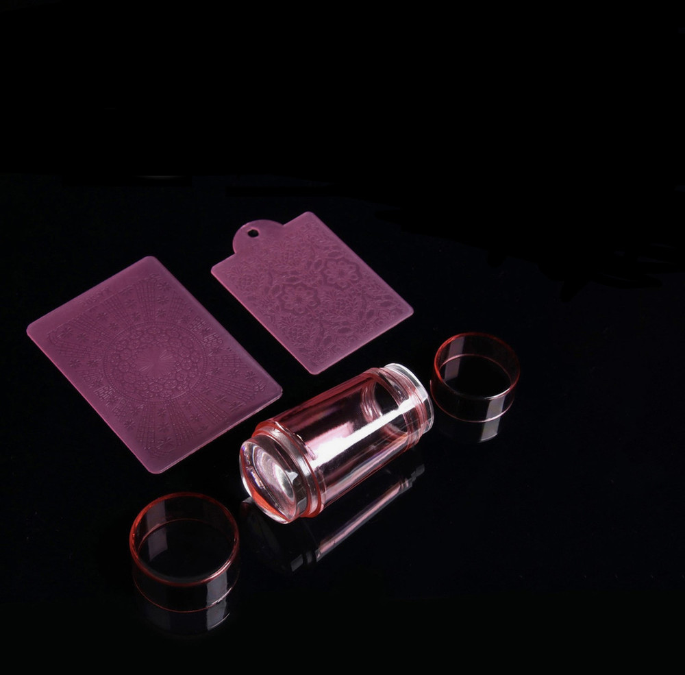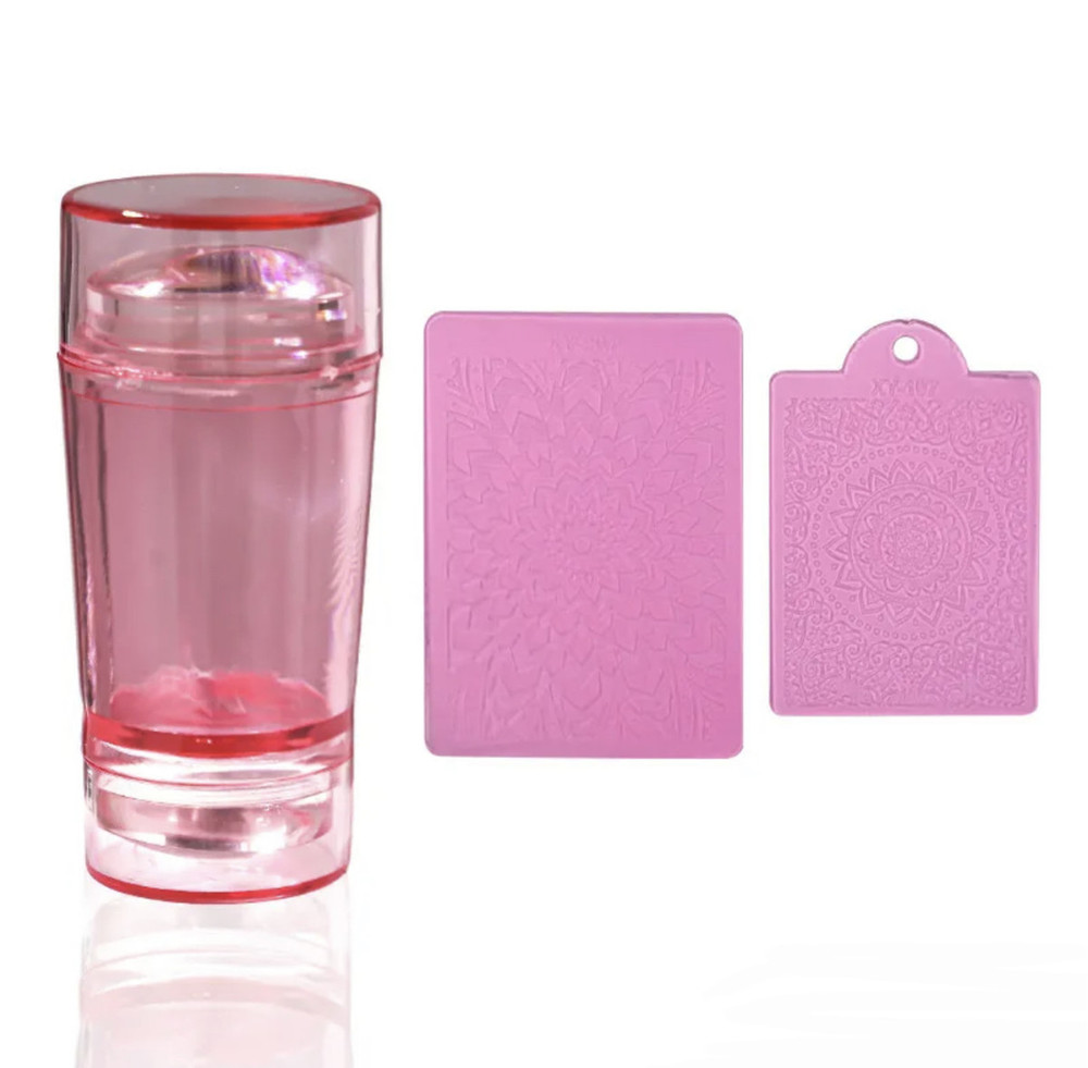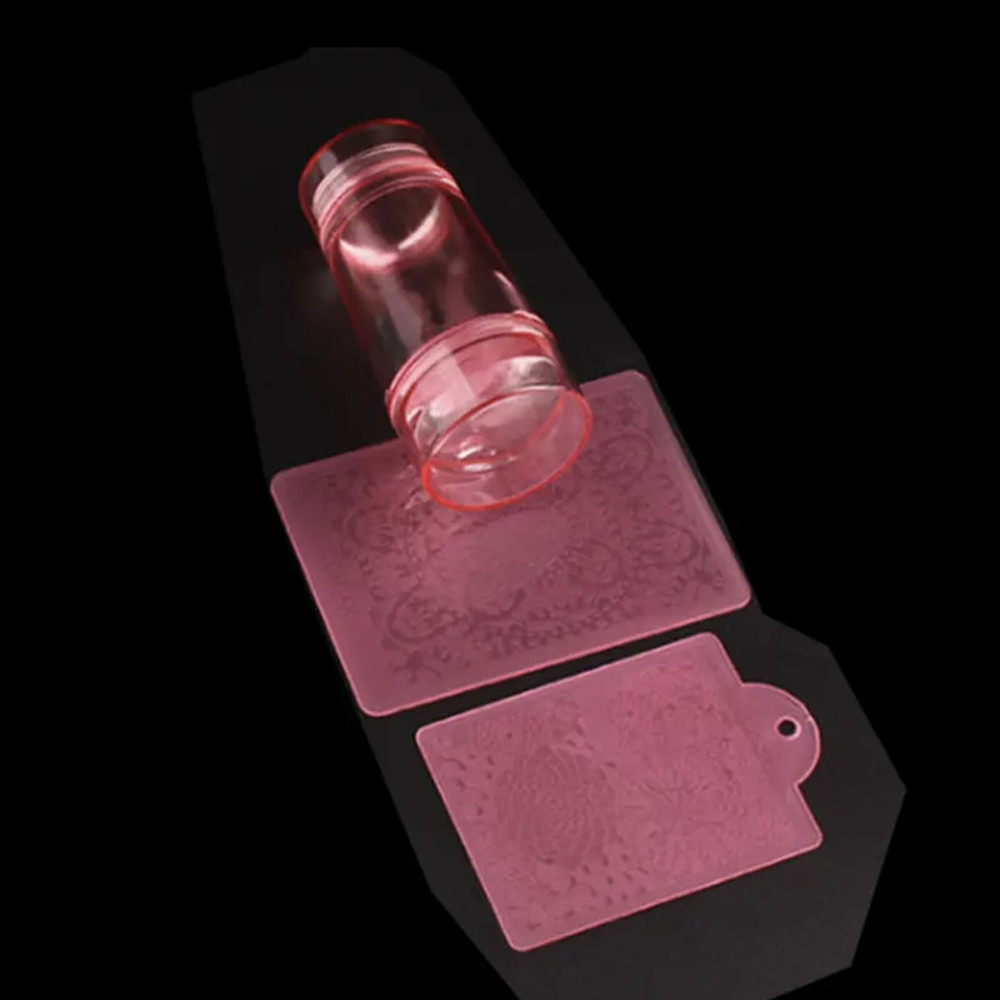 Двосторонній штамп для стемпінгу нігтів з кришечкою + двома скребками з малюнками Рожевий